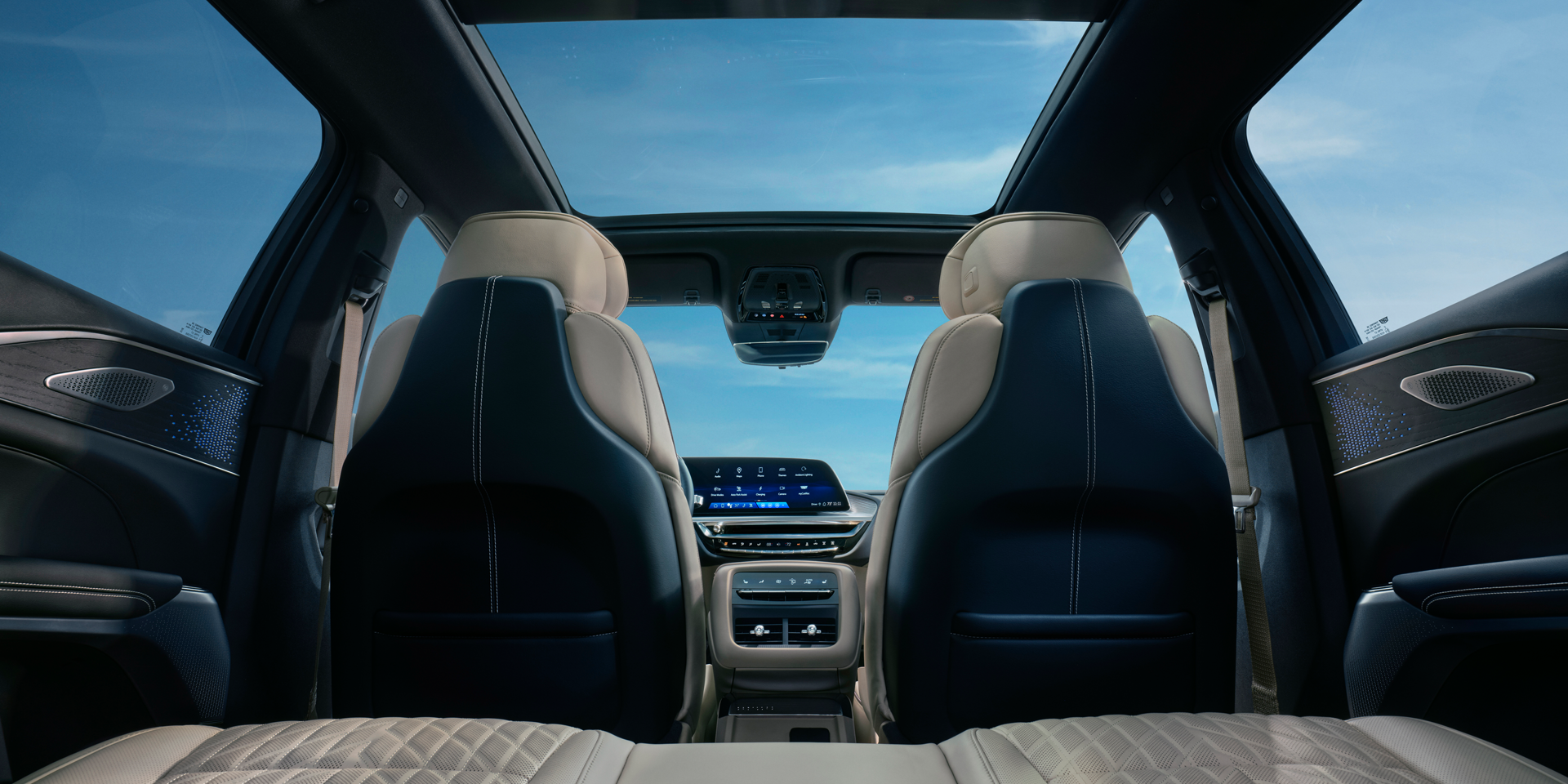 - Juniper Nappa Leather seating with perforated inserts and Sky Cool Gray piping, paired with Dark Ash genuine open pore wood décor and brilliant backlighting that filters through laser-etched wood patterns and alloy trimmed pedals