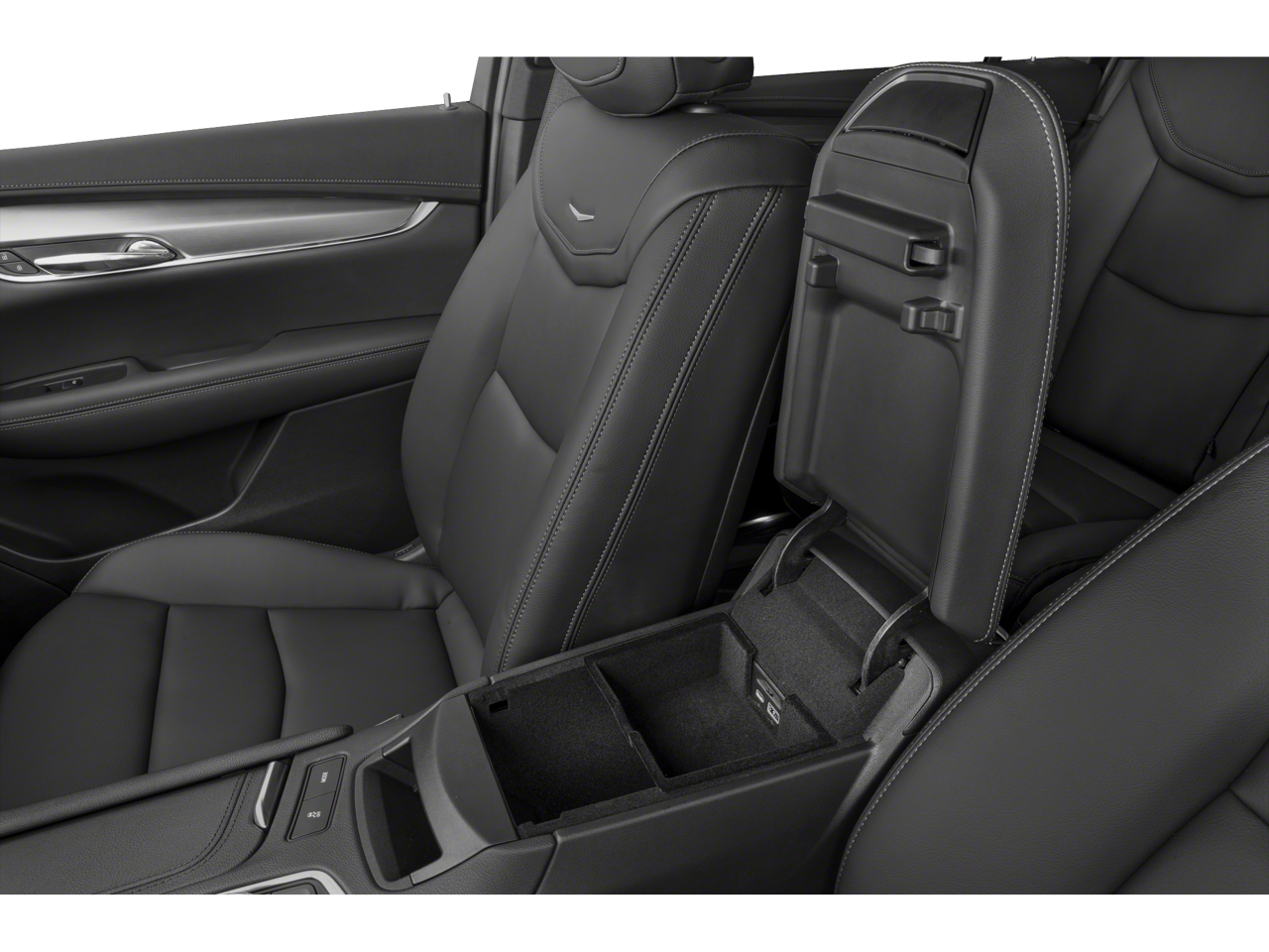 - Opens or closes when the system senses the key fob and the driver extends their foot under the left-hand side of the rear bumper over an image of the Cadillac Crest projected under the vehicle